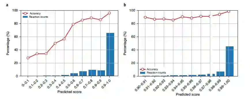 (2)基于GRT提出了LocalTransform图神经网络以预测分子之间的有机反应,实验结果表明该方法优于以往基于图的方法。 (3)由于模型是基于分类的方法,具有很强的score–accuracy相关性,因此具有一定可解释性。