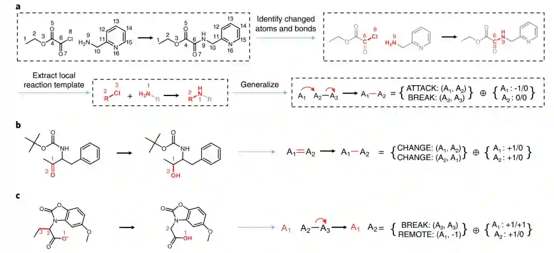 在这项工作中,作者首先提出了一种用于描述有机反应的通用反应模板GRT,该模板能覆盖大部分有机反应,具有极大的灵活性与简便性;然后基于此提出LocalTransform模型,通过识别反应中心并利用GRTs来预测有机反应;最后通过实验证明了该模型的有效性,并分析了识别错误的例子,指出模型很大程度上受限于反应映射的质量以及数据集中反应的多样性,预期未来通过使用具有更高质量原子映射方法的数据集以改进模型。
