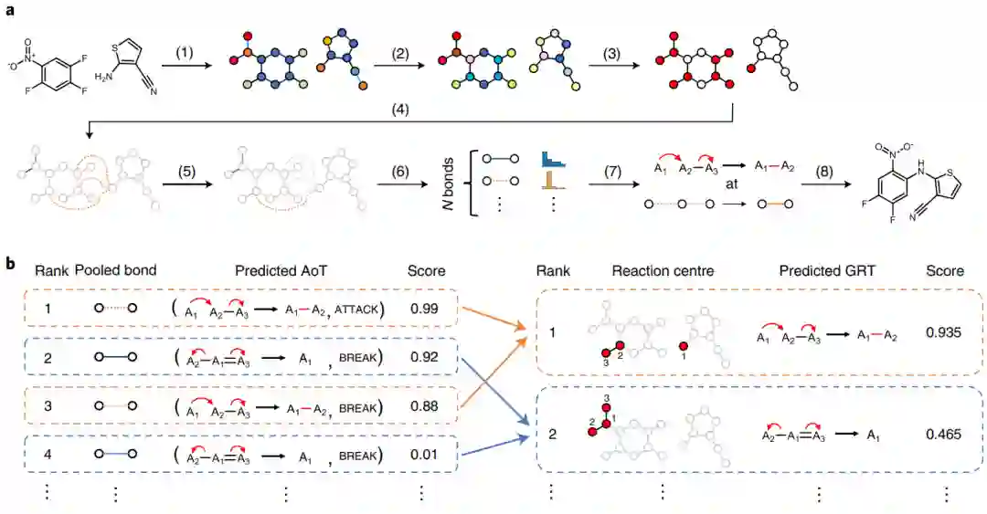 预测有机反应结果是化学中的一个基本问题,利用计算机模型精准预测有机反应能够大大加快新分子的设计过程。目前已存在一些机器学习方法来预测有机反应,然而现有模型大多利用化学语言或者分子序列来对有机反应进行预测,这与资深化学家通过识别具体反应的子结构并通过已有化学知识判断有机反应有很大区别。