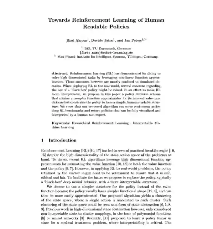 题目: Towards Reinforcement Learning of Human Readable Policies