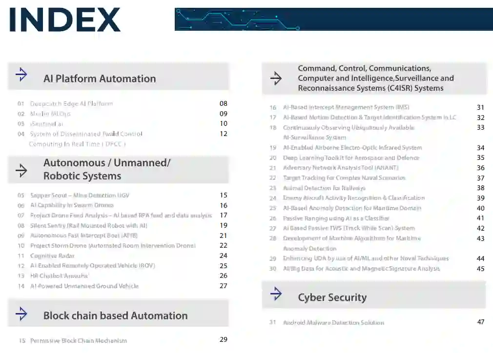 公共和私营行业、研究组织、学术机构、初创企业和创新者之间的这种共同努力,有助于在数据、物流、监控、武器等领域创造许多基于人工智能的独特技术产品。