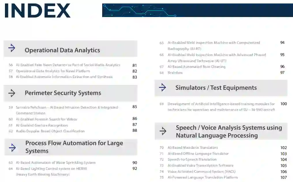 本书是个人、公司和机构在国防领域基于人工智能技术的一些惊人的产品和明星成就的汇编,以使印度国防工业成为一支主要的全球力量。