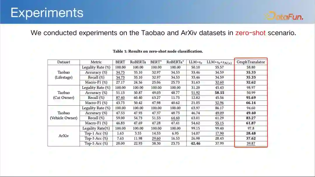 在淘宝和 ArXiv 数据集上进行了零样本场景下的实验,可以看到 GraphTranslor 有着显著的提升。****