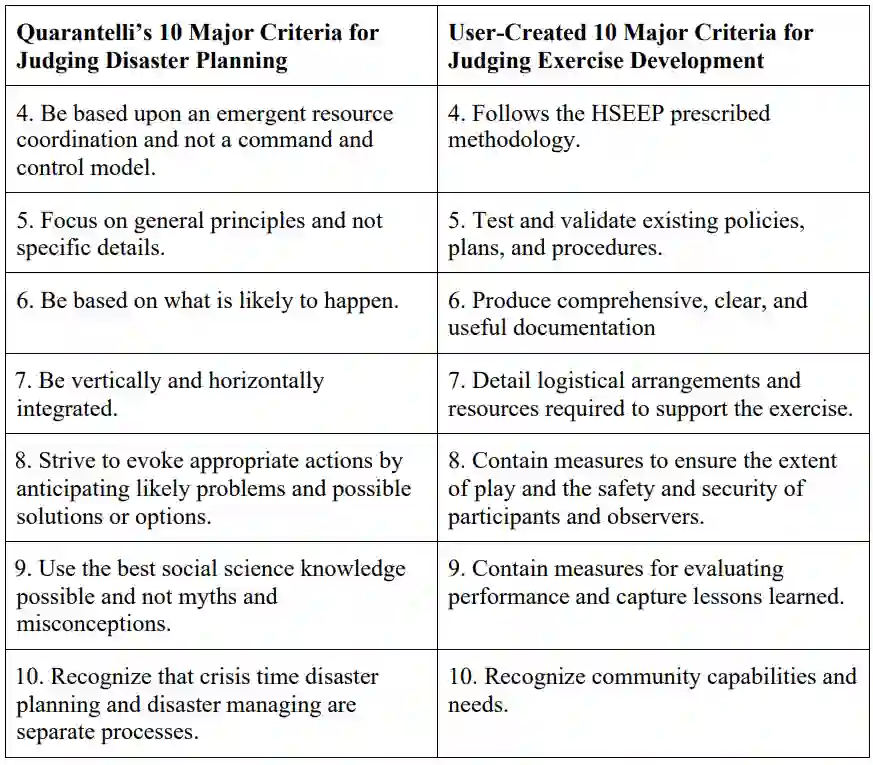 需要制定标准,将 LLM 生成的内容与公认的标准和最佳实践进行比较,以衡量研究结果的准确性、可靠性和实用性。研究选择了 Quarantelli的“判断灾难规划的 10 个主要标准”和一套新颖的“判断演习开发的 10 个主要标准”,这套标准源自国土安全演习和评估计划。研究表明,GPT 模型为国土安全规划和演习开发提供了宝贵的支持。在规划场景中,GPT 在一致性和缺乏局部细节方面面临重大挑战,即使提供了所需的背景信息也是如此。GPT 模型在演习设计中表现较好。在演习设计中,更多的通用场景输出是有价值的,而不是被严格审查的。如果引导得当,GPT 在创建“事件场景总清单”(MESL)方面表现出色,展示了其固有的创造力。建议采用的方法是将 GPT 的创新与国土安全专业人员的专业知识相结合,形成合力,改进规划流程,为应急场景制定切实可行的战略。由于 GPT 无法进行分级规划,研究建议将复杂的任务分解成较小的、相互关联的组成部分,由定制的 GPT 模型来解决,从而克服障碍。这种模块化方法完善了人工智能在国土安全功能方面的特殊性,提高了其产出的质量和相关性。
