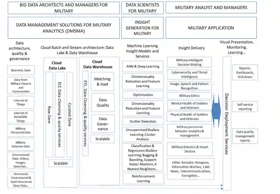 机器学习(ML)通过利用来自不同来源(包括大数据应用程序)的大量可用信息,实现了许多任务的自动化。它的使用目前正在广泛的传播,而ML已经成为我们日常生活中[1]的重要组成部分。在军队中,智能应用的使用也加速了[2]的发展。例如,韩国国防部大幅增加了其信息,随着越来越少的情报分析师,他们需要应用人工智能(AI)技术来准确、及时地处理所有信息[3]。另一个值得注意的例子是军事设备和机器对石油的依赖。这也是ML发挥作用的地方,因为军事后勤必须基于明智的推理[4];因此,我们看到了ML是如何融入军事世界的。本文的目的是提出一个体系结构模型,以反映如何在军事环境中实际应用数学模型。在这个架构中,我们解决了在军事环境中使用最频繁的数据、算法和应用等方面的问题。