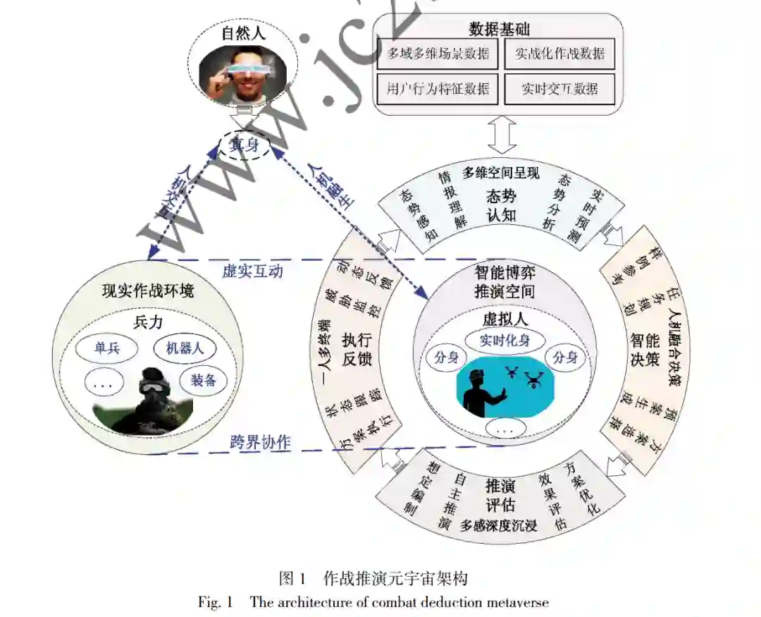 元宇宙时代的到来将成为指挥控制系统的“赋能 器”, 尤其对于为指挥控制决策筹划环节提供技术和 手段的作战推演, 实现身临其境的态势感知、深度沉 浸的推演评估体验等提供新机遇. 此前王飞跃研究员 就提出“平行智能指挥与控制”的核心理念, 即为虚实 互动的平行思想[5] , 其主要思路是以数据为驱动, 构建 一系列人工系统, 即军事组织与系统, 通过实际环境 与人工系统虚实互动来完成特定军事任务及目标, 并 能实时反馈效果, 从而提升作战能力与执行效果. 而 指挥控制元宇宙正是平行智能指挥与控制的发展趋 势, 其典型应用是作战仿真推演. 世界各国均认识到仿真推演技术在军事领域的 巨大作用. 美国防部高级研究计划局(DefenseAdvanced Research Projects Agency, DARPA)机构于 2007 年启 动的“深绿”计划(deep green, DG), 旨在动态预测战 场的变化趋势, 为指挥决策提供支持, 其核心技术是 实时的态势仿真[6] . 该计划虽于 2011 年暂停, 但其思路和方法为作战仿真推演技术的发展奠定了基础. 从 2016 年 AlphaGo 战胜李世石, 到 2017 年 AlphaGo Zero 再度刷新纪录, 再到 2019 年 AlphaStar 在即时战 略游戏《星际争霸 2》中以 10∶1 战胜职业高手, 其核 心思路都是从基于仿真推演的实践出发, 从中汲取经 验或训练机器学习模型[7] . 美国陆军研究院在 2021 年尝试将星际争霸游戏环境 SC2LE 改造成作战推演 软件, 并在其中利用深度强化学习技术进行作战方案 推演[8] . 英国国防科技实验室同样在 2021 年提出将深 度强化学习应用于军事智能博弈仿真环境, 并在美国 军事学院举行了美国、英国、澳大利亚、加拿大与新西 兰 5 个国家的兵棋智能博弈比赛[9] . 以上研究进展不 仅证明了多智能体强化学习在作战仿真推演中重要 的实用价值, 也展示了虚拟空间对于仿真对抗训练的 巨大优势与前景. 而元宇宙作为与现实世界映射与交 互的新型虚拟现实空间, 对于促进仿真推演的发展具 有重要作用. 因此, 本文从作战推演指挥决策的发展 需求出发, 依据元宇宙的定义及主要特性探讨元宇宙 赋能作战推演领域的主要着力点;前瞻性分析元宇宙 时代作战推演虚实融生的新形态, 深度讨论作战推演 元宇宙的架构以及关键技术;最后详细介绍作战推演 元宇宙的应用优势, 以及面向未来多域联合作战场景 的应用展望.
