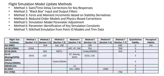 在STO应用飞行器技术(AVT)小组(STO AVT-296)研究任务组(RTG)下,每个成员国都完善并记录了他们自己的特定方法,以及其他国家使用其独特的飞行测试数据库的方法。更新方法之间的比较已被调查,以找到最佳做法和对不同应用的适用性,包括先进的旋翼机配置。本讲座系列强调了在STO AVT-296工作期间完成的工作。