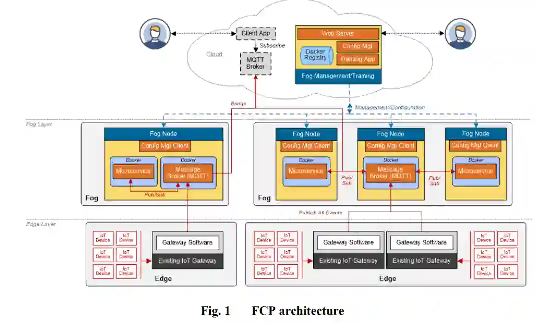 图 1 描述了 FCP 的概念架构以及微服务和代理之间的发布和订阅任务。