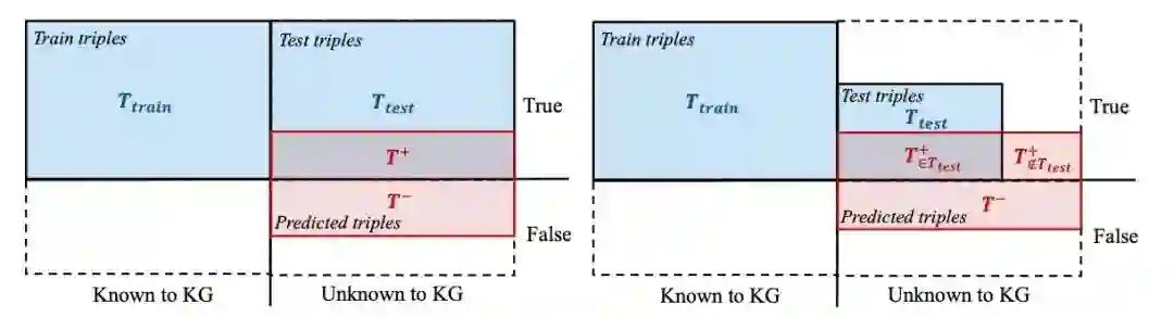 已有的知识图谱多基于开放世界假设或封闭世界假设(如下图所示),由于在开放世界假设下,未知的且不在测试集里的三元组真值无法评估,因此我们提出了基于关系相似性的部分开放世界假设。