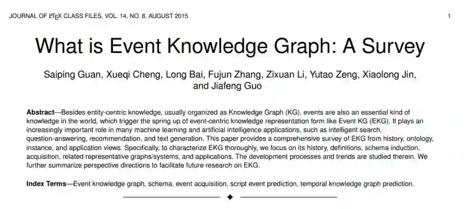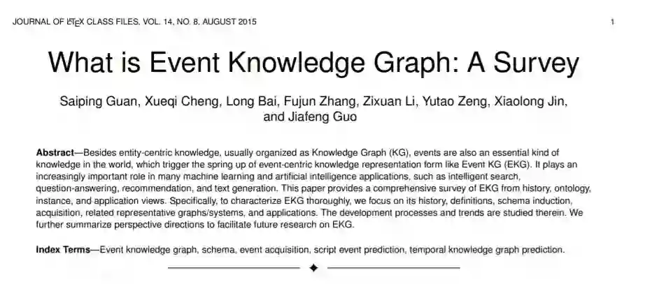 知识图谱(KG)是谷歌在2012年发布的一种流行的知识表示形式。它关注名义实体及其关系,因此代表静态知识。然而,世界上存在着大量的事件信息,传递着动态的程序性知识。因此,以事件为中心的知识表示形式(如Event KG (EKG))也很重要,它将实体和事件结合在一起。它促进了许多下游应用,如智能搜索、问答、推荐和文本生成[1]、[2]、[3]、[4]、[5]。