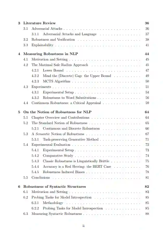 在这篇论文中,我们通过对抗性鲁棒性的镜头调查NLP模型的保证和形式解释性。我们回顾了在CV中定义的对抗性鲁棒性的适用性,作为神经网络(NN)决策对离散和连续扰动的最大安全区域。我们开发了一个评估框架,为不同模型认证对抗性鲁棒性,并分析了在复杂性增长的设置中这些证书的有效性如何消失。这项调查是对鲁棒性新定义的前奏,这些定义与语言学一致,旨在评估模型的句法和语义能力。