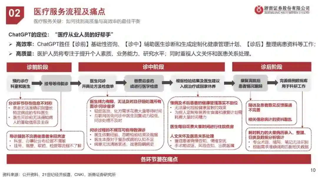 1、ChatGPT与人脑学习路径比较 ChatGPT:自然语言处理技术(NLP),注重文字性、数据性输入输出; 医药从业:医学本科研究生的训练类似文字/数据性输入输出,规培/博后、专科专家阶段是真实环境下的经验、病例输入输出为主 可能替代内容性重复脑力劳动,短期内无法替代高要求、高限定场景下的工作需求。 港交所:18C助力特专科技公司上市 2、ChatGPT对医疗行业的影响 ChatGPT助力医疗平衡高效率与高质量; ChatGPT应用于服务性、重复性强的标准化环节(诊前分诊导诊,诊中辅助决策、健康管理及诊后随访及数据归档等); 应用ChatGPT时,将在医学诊断、护理操作和人文关怀方面面临巨大挑战。 3、ChatGPT对医药行业的影响 ChatGPT的强数据分析+生成式AI技术有望加速拓展药物研发新边界(高效率和创新度); ChatGPT应用于对管理分析持续海量数据流和服务性有较高要求环节(药物发现、临床前/临床试验、销售定价、生产工艺等); 应用ChatGPT时,将在数据质量、训练成本和隐私安全方面面临巨大挑战。