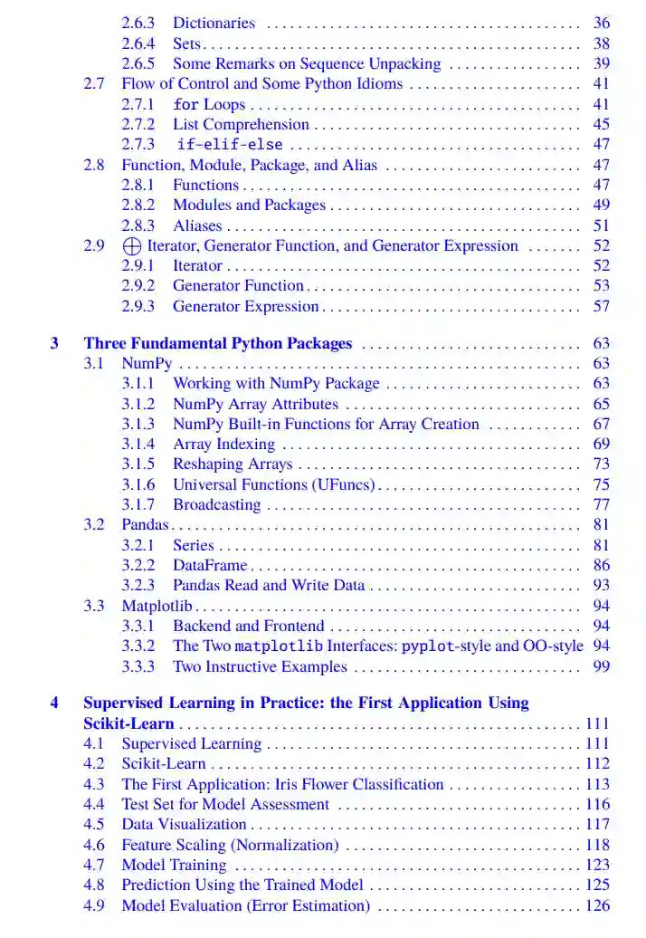 这本书作为本科和研究生的教材,旨在帮助那些愿意从理论和实践的角度理解机器学习基本要素的学生。选择本书中的主题是基于一个标准:某种方法的实用价值是否证明了它对于具有工程学和其他数量领域典型数学背景的学生的理论阐述是合理的。因此,这本书不仅包含实用的技术,而且以对研究生和高级本科生都容易理解的数学语言呈现它们。教材涵盖了一系列主题,包括最近的邻居、线性模型、决策树、集成学习、模型评估和选择、降维、组装各种学习阶段、聚类和深度学习,以及对数据科学和机器学习的基础Python包如NumPy、Pandas、Matplotlib、Scikit-Learn、XGBoost和Keras(基于TensorFlow后端)的介绍。鉴于Python编程语言在机器学习中的主导地位,该书通过Python实现来补充每种技术的理论介绍。在这方面,两章专门介绍必要的Python编程技能。这一特点使得这本书对于具有不同编程背景的学生来说是自给自足的,与假设读者具有先前Python编程经验的其他书籍形成鲜明对比。因此,本书的系统结构,以及所提供的许多示例和练习,将帮助读者更好地掌握内容,并具备日常机器学习应用所需的实践技能。 本书的组织结构如下: