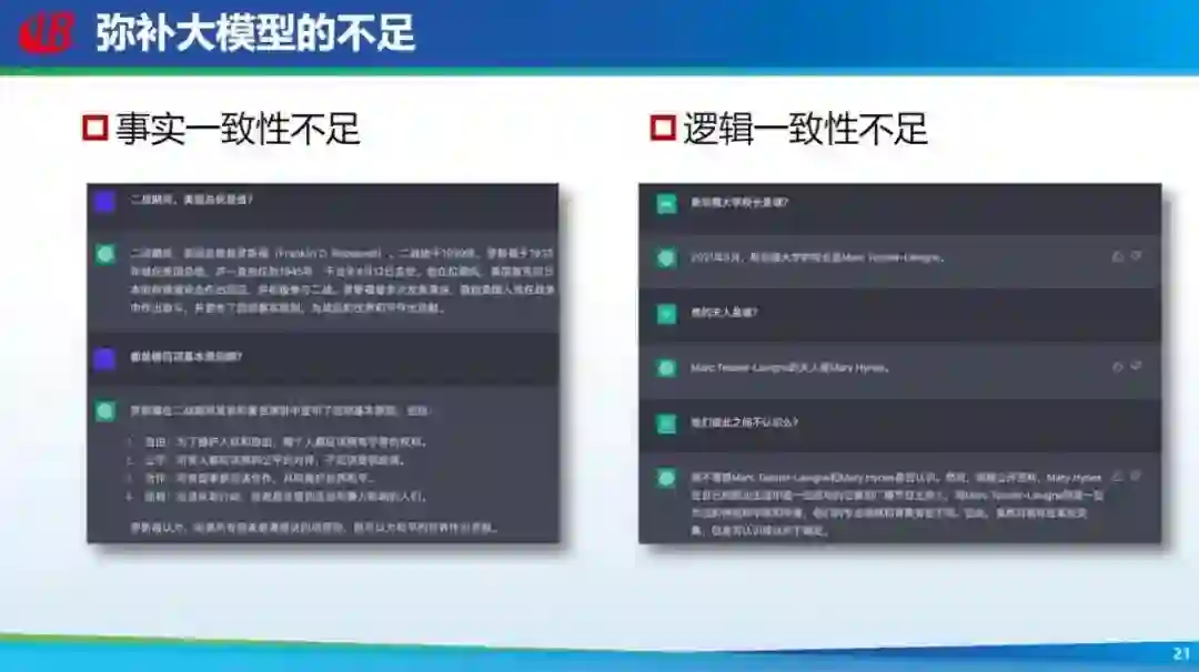 大模型有哪些不足之处?虽然 ChatGPT 效果惊艳,但它还不完美、存在很多不足,包括事实一致性不足、逻辑一致性不足。