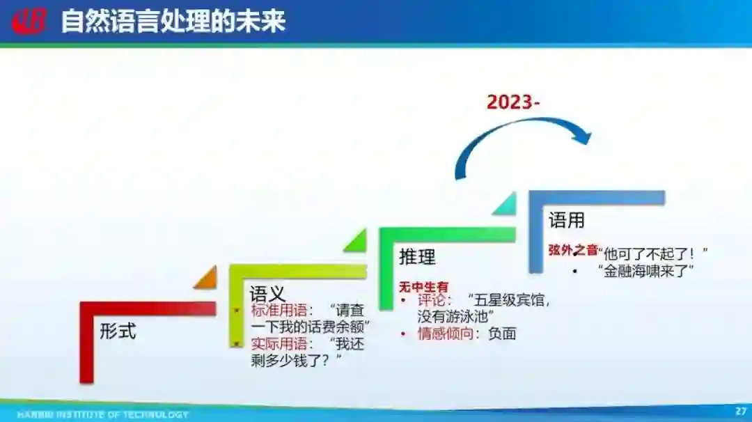 再往后人工智能怎么走,现在 ChatGPT 比较好的解决了推理问题,以后可能要解决语用的问题,同样一段话所处的语境不一样,对象不一样,用的语气语调不一样,可能表达的含义就不一样。