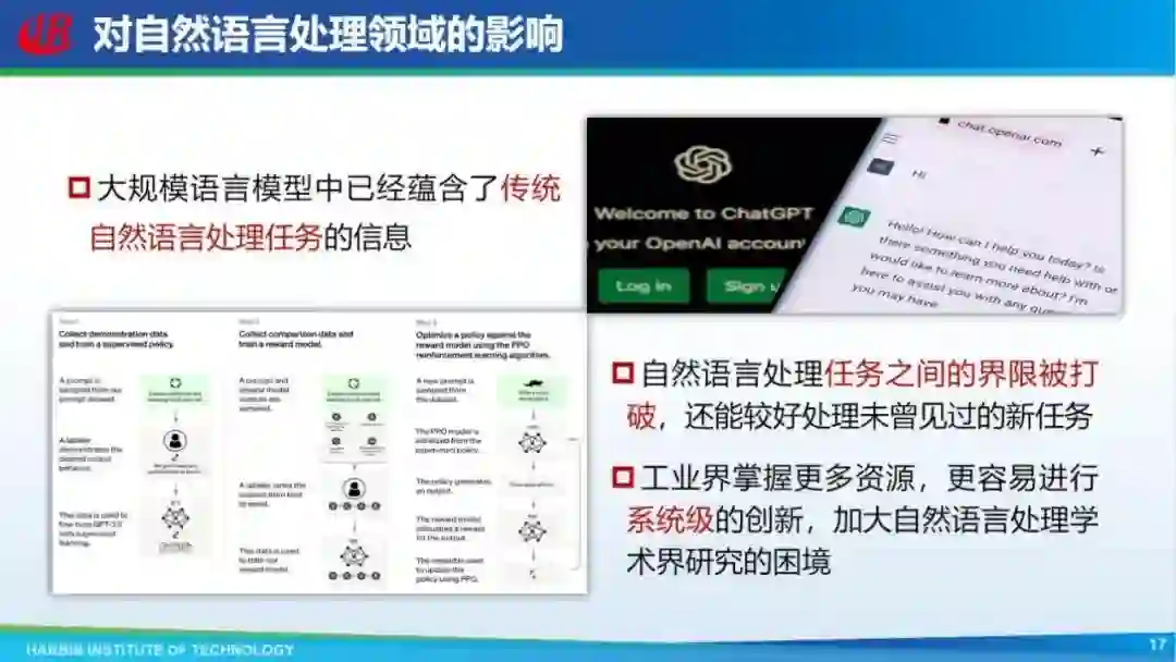 ChatGPT 给自然语言处理领域带来了很大冲击,现在越来越多的资源,包括计算资源、数据资源、用户资源,都为工业界所掌握,因此更容易做系统级的创新。
