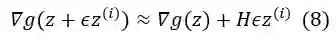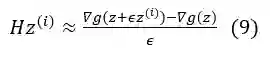 在这种情况下,我们可以实现梯度下降法来最小化 g,其中最小点给出了方程 (6) 的解。在最小化过程中,梯度更新的方向设置为与残差 b-Hz(i) 共轭(即正交),其中 z(i) 是第 i 次迭代中 z*的估计,以实现最佳收敛速度。为了在不显式计算 H 的情况下实现这一点,我们可以利用 Hessian 向量积[4]。具体地,对于 z 附近一个小的变化,我们有:
