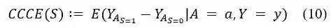 尽管在许多情况下可以获得属性注释,但很难知道这些属性中哪些属性决定了放射科医生对每个特定患者的标注。为了识别用于对齐的因果属性,我们采用基于反事实因果效应的因果归因方法[5],来量化在条件化整个属性向量的情况下,任何属性子集的因果概率。具体来说,给定属性 A=a 和标签 Y=y 的情况下,我们可以计算每个属性子集 S 的条件反事实因果效应(CCCE)得分:
