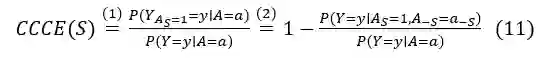 在计算每个属性子集的 CCCE 得分后,我们选择得分最高的子集 S 作为与标签因果相关的属性集。