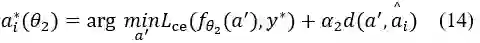 ai*(θ2) 是在标签 y 发生变化条件下,以下目标函数最小化后生成的反事实属性: