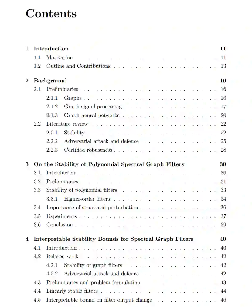 尽管不断增加的建模方法和旨在处理图结构数据的架构,但对它们的属性和特性的关注较少。很少有论文致力于这些模型的理论分析。即使从实证角度来看,大多数模型也仅仅是基于它们的预测准确性进行评估。 在这篇论文中,我们专注于基于图的机器学习模型的鲁棒性属性,包括来自图信号处理社区的主要工具——谱图滤波器,以及图机器学习社区中最常用的工具——图神经网络。