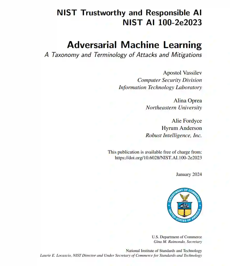 这份国家标准与技术研究所(NIST)的可信赖与负责任人工智能报告,开发了一套对抗性机器学习(AML)领域概念的分类体系,并定义了相关术语。这个分类体系基于对AML文献的综述建立,按照概念层次排列,包括关键的机器学习方法类型、攻击的生命周期阶段、攻击者的目标和目的、以及攻击者对学习过程的能力和知识。报告还提供了相应的方法,以减轻和管理攻击的后果,并指出了在人工智能系统生命周期中需要考虑的相关开放性挑战。报告中使用的术语与AML文献保持一致,并由一个词汇表补充,该词汇表定义了与人工智能系统安全性相关的关键术语,旨在帮助非专家读者理解。综合来看,这个分类体系和术语旨在为评估和管理人工智能系统的安全性的其他标准和未来的实践指南提供信息,通过建立一个共同的语言和对迅速发展的AML领域的理解。