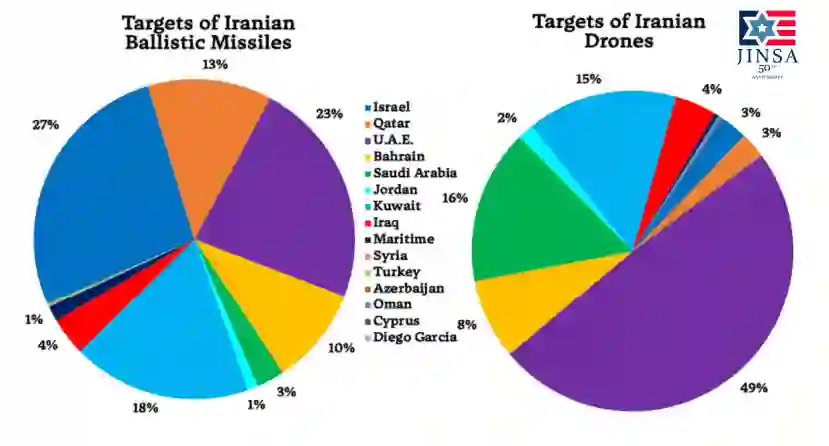 伊朗初期分散火力可能是由于其战前计划采用分散指挥控制的“马赛克”学说,将决策权下放给低级指挥官。随着以色列在“12天战争”和当前冲突的开始阶段消灭了其高层领导,伊朗的做法本意是授予地区空军指挥官对预定目标开火的权力,目的是将火力分散到整个地区。然而,伊朗也在整个战争期间转移了其火力重点,例如在以色列袭击南帕尔斯天然气田后对能源目标进行报复性打击,这表明随着战争的进行,开火决策权可能出现了更大的重新集中。
