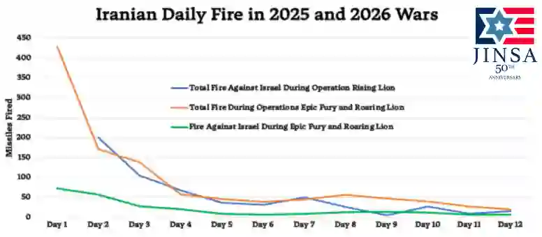 在集束弹药散开前进行拦截的挑战,加上以色列决定不拦截所有集束弹药,导致导弹对以色列领土的命中率急剧上升。伊朗有充分的动机将其在集束弹药上的成功以及以色列对其拦截弹库存的任何配给,都视为其战术有效的证明,并会加倍使用。在战争的前两周,只有3%射向以色列的弹道导弹击中了人口稠密区,但从3月13日到22日,对以色列的平均命中率上升到约27%,这主要是由针对以色列的集束弹药打击所驱动。