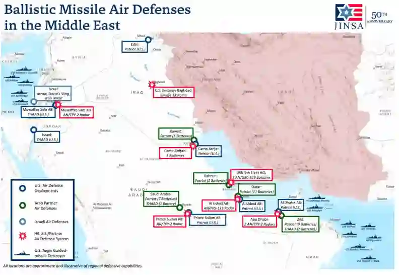 正如JINSA关于2024年和2025年战争的报告所详述的,伊朗的每一次直接攻击都展示了中东地区综合防空反导体系的作战价值。2024年4月,伊朗无人机和导弹飞越地区空域袭击以色列,促成了协调预警和拦截,包括约旦击落经过其领空的无人机。2024年10月和2025年6月的攻击更依赖于弹道导弹,并要求美军和以色列之间持续协调以维持预警覆盖和拦截来袭威胁。这些事件表明,在中央司令部领导下建立的地区协调,使伙伴们能够在伊朗攻击跨越多个国家时更有效地做出反应。中央司令部通过在2026年1月在阿尔乌代德空军基地设立防空联合防御作战单元,以及将美国军官嵌入海湾伙伴的指挥控制中心,深化了这种协调,从而改善了美国与东道国防空系统之间的实时信息共享和联合交战决策。
