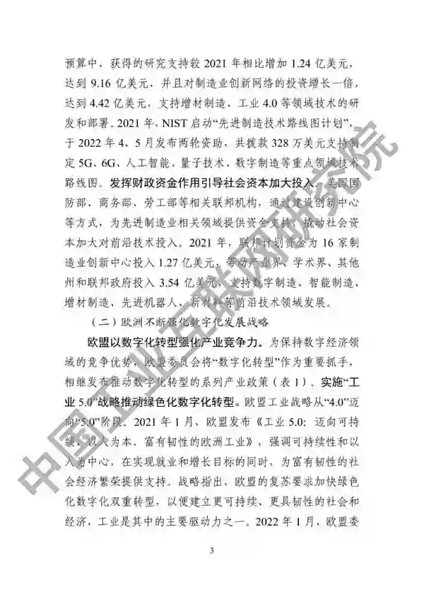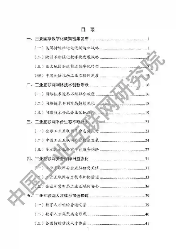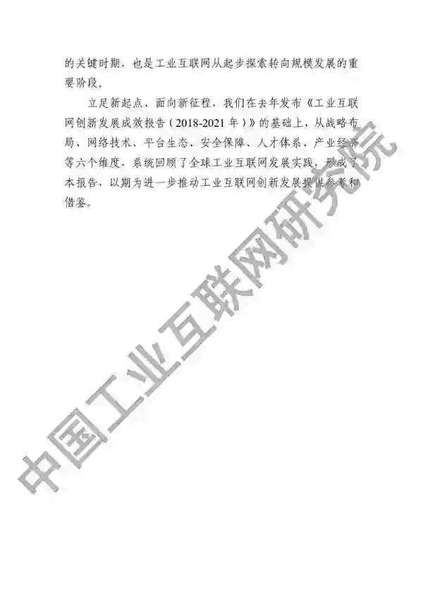 《全球工业互联网创新发展报告》是在去年发布的《工业互联网创新发展成效报告(2021-2023年)》基础上对全球发展的新观察和新审视。《报告》包括六个方面内容。 **第一,主要国家数字化政策密集发布。**近年来,深化数字技术应用、推动数字化转型已成为各国发展实体经济、培育竞争优势的普遍选择。美国连续十年推进先进制造业战略,加速制造业数字化的技术创新和应用。欧盟实施“工业5.0”战略,推动数字化绿色化双转型,构建以人为本、弹性、可持续的产业链供应链。特别是疫情发生以来,产业链供应链已成为数字化发展的关键基础和重要保障。德国发力“工业4.0”,以智能工厂、智能产线为基础,着力巩固制造业竞争优势。英法日等传统工业强国和新兴经济体都在强化数字技术优势,提高制造业竞争力。可以说,工业互联网“不是工具的革命,而是革命的工具”,正在全球形成共识。我国体系化推进工业互联网发展,各领域支持政策不断完善,地方支持力度不断加大,政策环境不断优化,为推动数字化转型注入强劲动力。 **第二,工业互联网网络技术创新活跃。**技术边界不断融合。工业现场复杂环境推动组网技术融合贯通,工业无线网络成为传统工业现场总线的重要补充,5G+TSN等融合技术加快发展。工业设备的海量连接和频繁交互,对工业数据实时分析提出更高要求,推动形成云网边端融合的网络技术架构,带动云化PLC、边缘智能终端等新型OT技术加速创新。技术专利快速增长。从总体看,工业互联网网络技术的全球专利申请量近10年年均增速超20%。从新兴领域看,5G、TSN、工业以太网等新型网络技术全球专利申请多年来均保持两位数增速。分级分业应用加速推进。新型网络技术快速演进迭代,已初步满足工业现场对大带宽、低时延、广连接、高可靠的通信要求,正在逐步融入生产制造全环节、全过程,创新应用持续深化。特别是我国在保持5G领先基础上,5G和工业融合进程不断加快,已在制造业、采矿、能源等重点行业形成了20多个较为普遍的应用场景。 **第三,工业互联网平台生态不断壮大。**全球平台发展迅猛。新主体不断涌入,微软、霍尼韦尔等龙头企业加快工业互联网平台建设,加速工业大数据、人工智能、区块链、边缘计算、工业元宇宙等新一代信息通信技术应用,推动工业互联网平台服务能力创新。新生态加速构建,西门子、SAP等工业基础软硬件企业不断深化数字业务集成,打造强强联合的生态化服务体系。特别是近年来,企业巨头并购工业软件公司数量显著增加,进一步推动平台生态重构。我国工业互联网平台建设快速推进。“综合型+特色型+专业型”平台体系初步构建。28个跨行业跨领域平台纵向整合行业资源、横向跨界赋能,加速构建产业生态。特色型平台融合应用持续深化,面向重点行业加速沉淀知识经验。专业型平台在数字孪生、工业智能、工业大数据分析等特定领域不断深入,服务能力加快提升。“六大模式”应用持续深化,“平台+园区”“平台+基地”等模式加速推广,行业数字化转型解决方案供给能力持续增强。 **第四,工业互联网安全防护日益深化。**安全技术加速演进。监测感知、威胁防护、处置恢复等通用安全技术的工业应用持续深入,在应对网络安全、设备安全、控制安全、数据安全等方面发挥了积极作用,不断提升工业企业网络安全防护能力。零信任、人工智能、区块链、边缘计算安全等新兴技术逐步拓展工业互联网安全技术架构,为增强工控系统内生安全防护能力、应对新型攻击威胁等提供了新选择、新路径。重点企业积极布局。国内外网络解决方案供应商和网络安全企业积极拓展工业互联网安全业务,聚焦关键基础设施网络安全防护、工控安全等重点领域,加大研发投入与产品服务创新,工业互联网安全技术支撑能力加快提升。 **第五,工业互联网人才体系加速构建。**全球数字人才普遍缺失,欧盟数字技能人才储备不足、我国工业互联网人才缺口较大,人才问题已成为制约工业互联网创新发展和制造业数字化转型的关键因素。全球数字人才逐步集聚,从区域看,进一步向北美、欧洲、亚太经济发达地区主要城市群集中。从行业看,以制造业为代表的实体经济成为数字人才的重要就业选择。各国加速人才体系建设,积极培养具备数字素养与技能的复合型人才。我国从标准体系、评价机制、学科设置、产教融合等方面加快工业互联网人才培养,取得积极进展。 **第六,工业互联网产业经济蓬勃发展。**全球工业互联网产业发展势头总体向好。2021年,全球工业互联网产业增加值规模达到3.73万亿美元,年均增速近6%。工业大国领跑全球产业发展,在59个主要工业国家中,美中日德四国工业互联网产业增加值规模占比超过50%。美国工业互(物)联网联盟(IIC)、德国工业4.0平台等组织聚焦差异化方向持续推动产业生态建设。我国工业互联网经济增长强劲。2021年,我国工业互联网产业增加值超4万亿元,其中核心产业增加值达到1.17万亿元,名义增速超16%。工业互联网平台创新合作中心、工业互联网产业联盟等合作载体快速壮大,推动产学研用深度同创新。