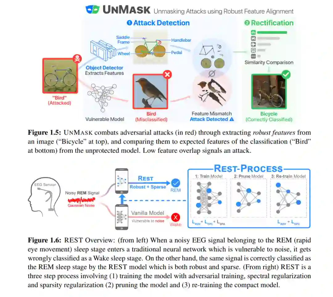 (1)工具:开发了TIGER,第一个全面的图鲁棒性工具箱;鲁棒性调研确定了图鲁棒性研究的关键但缺失的领域。(2)算法:我们的调查和工具箱表明,现有的工作忽略了计算机认证网络的横向攻击。本文开发了D2M,第一个算法框架,通过从图论的角度建模横向攻击移动,来量化和减轻网络对横向攻击的脆弱性。(3)数据库:为了共同防止横向攻击,开发了MALNET-GRAPH,世界上最大的网络安全图数据库,包含696个类别的超过1.2M个图,并首次展示了通过图介质进行恶意软件检测的有效性的大规模结果。通过构建最大的二值图像网络安全数据库扩展MALNET-GRAPH,该数据库包含1.2M图像,比其他唯一的公共数据库多133倍的图像,使少数行业实验室在恶意软件检测和分类研究中的新发现成为可能(MALNET-IMAGE)。(4)模型:为了保护系统免受对抗性攻击,本文开发了UNMASK,这是第一个标记计算机视觉系统中语义不连贯的模型,该模型检测到高达96.75%的攻击,并通过正确分类高达93%的攻击来保护模型。受UNMASK保护计算机视觉系统免受对抗性攻击的能力的启发,本文开发了REST,通过对抗性训练、谱正则化和稀疏正则化的新组合来创建噪声鲁棒模型。在存在噪声的情况下,所提出方法将最先进的睡眠阶段评分提高了71%,使我们能够在早期和家庭环境中诊断睡眠障碍,同时使用的参数减少了19倍,MFLOPS减少了15倍。我们的工作对行业和社会产生了重大影响:UNMASK框架为DARPA数百万美元的GARD奖奠定了基础;用于图鲁棒性分析的TIGER工具箱是Nvidia数据科学教学工具包的一部分,供世界各地的教育工作者使用;我们发布了MALNET,世界上最大的图分类数据库,包含120万张图;D2M框架对微软的产品产生了重大影响,启发了该产品对横向攻击检测方法的改变。 https://smartech.gatech.edu/handle/1853/66145