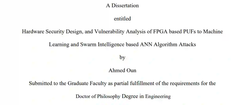 随着集成电路(IC)制造过程外包给外国代工厂的趋势日益明显,硬件安全威胁也大大增加。尤其令人担忧的是,不可靠和可疑的代工厂会利用受损和伪造的芯片渗透集成电路供应链。近年来,现场可编程门阵列(FPGA)等可编程器件的使用迅速增加。在通信网络、智能电网、国防设备和物联网等关键任务计算系统中越来越多地部署这些设备,导致黑客不断设计新技术来破坏这些设备的安全性。令人严重关切的是植入称为木马的虚假电路,以窃取或降低芯片的功能。这些被篡改的芯片随后可充当 "间谍芯片",供对手和黑客收集机密数据。为了应对这种攻击,芯片设计者可以使用物理不可克隆函数(PUF)在这些设备中嵌入额外的安全层。尽管物理不可克隆函数(PUFs)被认为是不可克隆和不可破解的,但研究人员发现它们很容易受到机器学习(ML)攻击。从挑战-响应对(CRP)的子集中,使用不同的机器学习算法可以有效地预测剩余的 CRP。