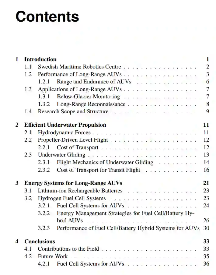 长距离AUV的性能由几个参数来描述,如自主决策、精确导航、系统可靠性和航行器续航能力。航行器的续航能力是实现长距离任务的关键能力,由能量容量和功率消耗决定。通过以最佳速度巡航,可以最有效地利用航行器的续航能力,从而实现最长的航行器航程。AUV的航程可以通过最大限度地提高可用的能量容量和最大限度地减少总功率消耗来延长。本论文展示了推进系统和动力源的选择如何有助于提高AUV的航程。