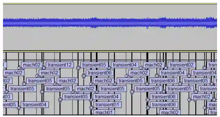 图3.1 手工标注的舰船完整音频.wav文件片段(Audacity软件界面展示)