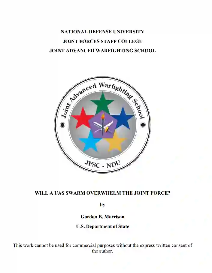 在过去的十年里,无人驾驶飞机系统(UAS)已经从主要的国家军队扩散到众多的商业行业、较小的军队和非国家行为者。世界上大多数国家现在都在使用军用无人机系统,而非国家行为者已经将商用无人机系统用于履行军事职责。最近在中东、乌克兰和高加索地区的冲突表明,国家和非国家行为者可以在战场上有效地使用特定的军事或商业无人机系统。人工智能(AI)控制的无人机群将提供无人机系统发展的下一个飞跃。美国、中国和俄罗斯都在开发利用人工智能的UAS蜂群。这些无人机系统蜂群将改变未来战争的特点,并有可能压倒目前的实地防空系统。本文试图分析联合部队目前的态势,并确定在应对无人机系统威胁的理论、训练和物资方面的差距。经过长期的忽视,联合部队已经开始重新强调短程防空,以应对目前实战中的无人机系统;然而,联合部队却无视无人机系统群的迫近威胁。本文建议对条令、训练和物资进行修改,以充分应对这一迫在眉睫的威胁。
