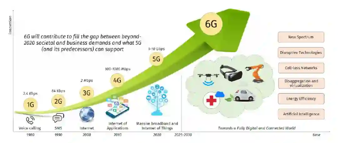 随着第五代 (5G) 技术部署率的提高和标准继续趋于稳定,研究人员已将注意力转向 6G。新的用例和潜在的性能不足,已经引发了研究热潮。早期工作集中在关键基础研究上,这些研究将支持下一代通信网络的目标目标,例如 1 Tbps 峰值数据速率、1 ms 端到端延迟和长达 20 年的电池寿命。