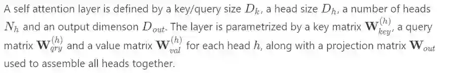 多头自注意力层 Multi-Head Self-Attention Layer CNN和self-attention layers之间的主要区别是一个像素的新值依赖于图像的其他像素。与接受域为 K×K邻域网格的卷积层不同,自注意力的感受野总是全图。这带来了一些缩放的挑战,当我们应用Transformer到图像,我们没有覆盖在这里。现在,让我们定义什么是多头自注意力层。