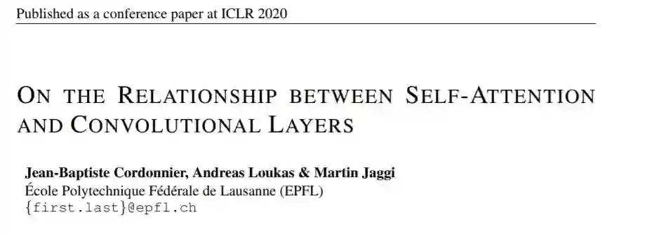 【导读】自注意力机制Self-attention近年来在深度学习方法中得到了广泛的应用,围绕self-attention的transformer模型已经在自然语言处理中成为基础模型构件,能够建模序列模型RNN/LSTM的作用,并且能够并行化。但是与卷积神经网络相比,self-attention能否建模达到同样的作用?最近,来自瑞士联邦理工学院在ICLR2020的论文验证了self-attention与卷积层的关系《On the Relationship between Self-Attention and Convolutional Layers 》,表明一个自注意力层可以表达任何卷积滤波器,只要有足够的头和使用相对位置编码。