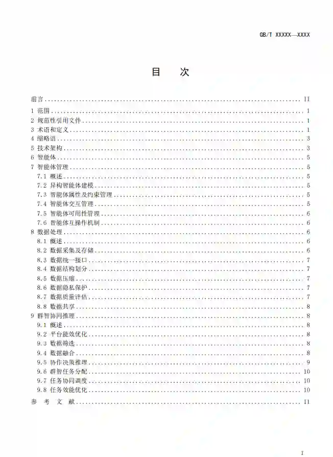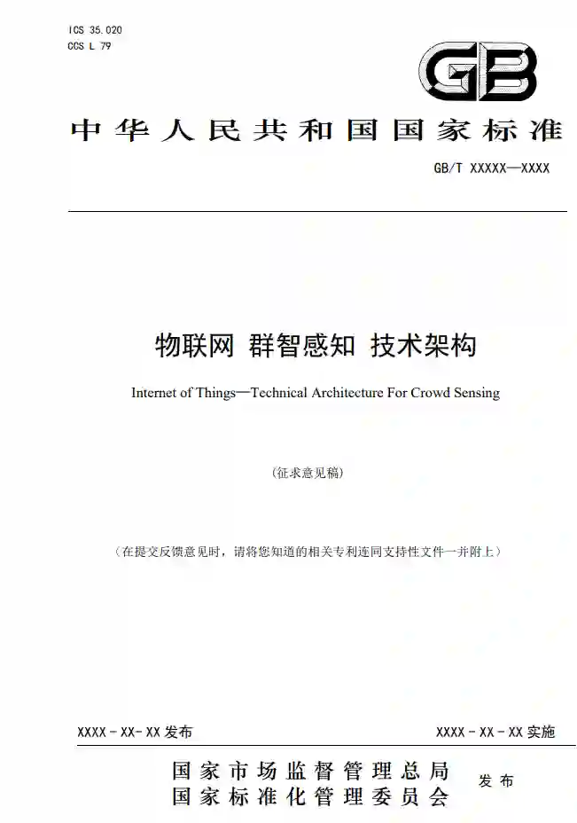 本文件规定了物联网群智感知的技术架构,给出了物联网群智感知技术架构中智能体、智能体管理、数据处理、群智协同推理的内容要求。 本文件适用于物联网群智感知技术的研发和使用。随着物联网终端,尤其是可移动终端的广泛与普及,群智感知成为了一种全新的感知与计算模型,其通过智能体之间的协同交互机制,自动完成数据的采集、分析和决策。这种技术利用了大数据、云计算和先进计算技术,从复杂系统中提取知识、信息,并通过智能体间的协作,共同构建一个基于适度协作、自我调整的智能体网络。当前,群智感知技术已被广泛应用于智慧城市、商业智能、智慧交通、公共安全、国防装备等领域。例如,通过利用大规模无人机作为基本感知单元,结合物联网和移动互联网,可以实现城市交通路网的畅通和拥堵情况的感知,城市空气、水体质量的监测;无人机集群可以通过高效的配送和监控,提高物流的效率和速度,特别是在紧急情况下,无人机集群能够迅速进行物资的运输,满足应急需求;此外,在汽车制造领域,单个智能体通过视觉识别系统,能够准确识别零件的位置和方向,集群间采用了群智感知技术来实现零件的自动化组装。这种集群协作的方式能够更灵活地适应变化的生产要求,提高生产效率和质量。 虽然群智感知技术被广泛地应用在各类行业中,但是国内尚缺乏对群智感知系统的研制、设计、开发具有指导性、整体性的国家标准,同时,对于群智感知的实现技术途径和评测方式尚存在分歧。具备表现为以下问题: 数据质量和准确性问题:由于群智感知依赖于大量个体或设备的感知数据,数据的质量和准确性成为一大挑战。不同设备、不同环境、不同个体的感知能力存在差异,可能导致数据的不一致性和误差。因此,在标准建设中需要充分考虑如何提升数据的质量和准确性,例如通过数据清洗、融合和校验等手段。 通信和协作机制:群智感知需要实现设备之间的有效通信和协作,以完成感知任务。然而,不同设备之间的通信协议和协作机制可能存在差异,导致通信不畅或协作失败。因此,在标准建设中需要统一通信协议和协作机制,确保设备之间的互联互通和协同工作。技术兼容性和互操作性:由于群智感知涉及多种技术和设备,不同技术和设备之间的兼容性和互操作性成为一个重要问题。在标准建设中需要充分考虑不同技术和设备之间的接口、协议和规范,确保它们能够无缝对接和协同工作。 理论框架与实践应用的兼容性:尽管群智协同理论已经构建了一个相对完整的理论框架,但在实际应用中,特别是在标准建设领域,这一理论框架往往难以直接套用。理论与实践之间存在一定的差距,导致理论难以有效指导实践,或实践结果难以完全符合理论预期。缺乏统一的评价标准:在群智协同的标准建设过程中,由于缺乏统一、明确的评价标准,导致难以对标准的质量和效果进行客观评估。这不仅影响了标准的制定效率,也可能导致标准的质量参差不齐,难以满足实际需求。 技术更新迭代的挑战:随着技术的快速发展,新的群智协同技术和方法不断涌现。这使得标准建设需要不断跟进技术更新,及时修订和完善现有标准。然而,由于标准制定过程的复杂性和耗时性,往往难以跟上技术更新的步伐,导致标准滞后于技术发展。因此,为推动群智感知技术在各行业的深入应用,亟需研究统一的标准规范。本文件在编制过程中,在广泛调研物联网和边缘计算相关标准的基础上,广泛总结和凝练最新学术文献,并积极听取产学研用相关单位的意见和建议,结合群智感知的产业现状,对群智感知的核心概念、系统架构、功能体系和实现途径等进行统一确定。本文正式发布后,将为群智感知系统的设计与研发提供有效指导,从而促进群智感知相关业务领域的规范统筹发展。