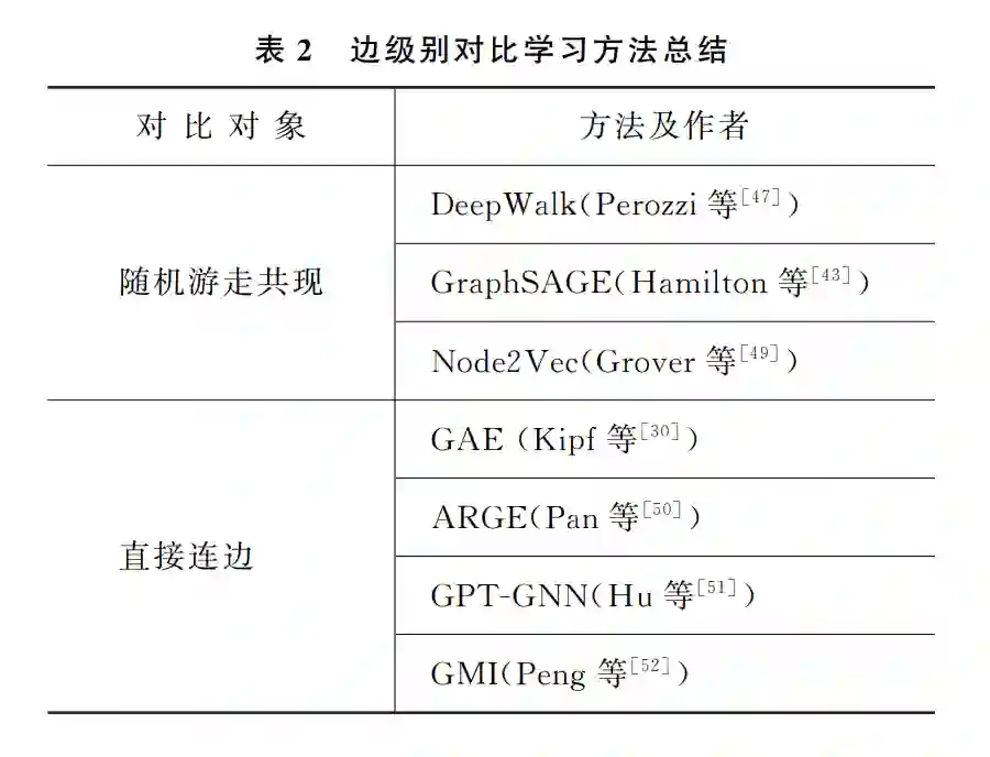为了更好地帮助该领域的发展,已有研究者梳 理了近些年来关于图自监督学习的相关工作,并且 形成综述[5,7,9-10]。但这些综述主要关注传统的图上 自监督任务,并没有针对图对比学习的方法进行详 细的梳理和分类。本文主要关注图对比学习模型, 收集整理了近些年图对比学习的工作。同时本文在 统一的框架下对比现有的方法,突出现有工作的异 同点及其发展脉络,从而帮助研究者更好地梳理现 有工作,期望能激发对图对比学习方法新的思考。 本文组织结构如下:第1节介绍图对比学习问 题及其涉及的相关背景知识,并给出形式化定义; 第2节梳理了节点级的图对比学习方法;第3节整 理了边级别的图对比学习;第4节整理了图级别的 图对比学习方法;第5节整理介绍了将图对比学习 应用在更复杂场景下的拓展;第6节总结了常用的 评价数据集和评价指标;第7节分析整理了图对比 学习现存的问题和未来可能的发展方向;最后一节 对全文进行了总结。