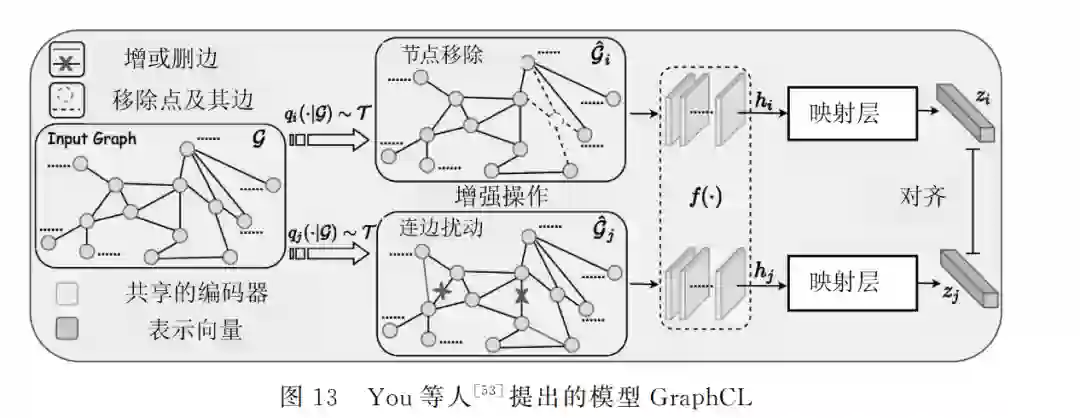 基于深度学习的图分析方法在很多任务上取得 显著的效果,而做好节点/图表示是其中的关键。近 年来基于对比学习的表示学习框架在图像等领域取 得了成功,这为图对比学习框架提供了坚实的基础。 本文对近年来出现的图对比学习框架进行了分析总 结,将图对比学习框架总结成三个重要的部分,分别 是正负例的定义方式、编码器模型的设计以及损失 函数的设计三个部分。 本文围绕图对比学习展开,梳理总结了近些年 来重要的图对比学习工作,同时提出了一些仍未被 很好解决的问题,以及未来可能的研究方向,尝试为研究人员建立一个较完整的研究视图,希望能为进 一步推进该领域的研究提供一定的帮助。