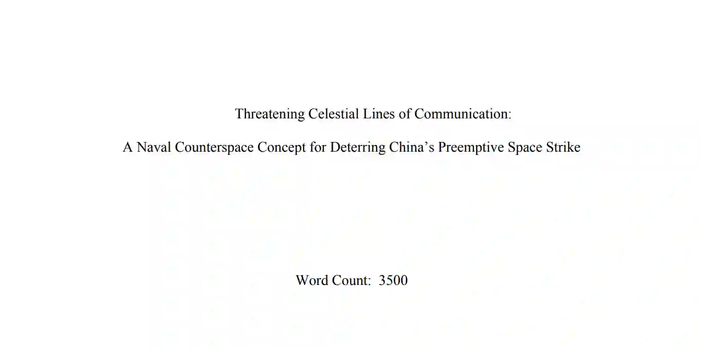 美国海军陆战队司令部目前的太空战威慑战略过于狭隘地专注于整合各联合军种的太空能力,不足以阻止先发制人的太空打击。美国海军陆战队司令部可以通过利用现有的海军水面部队并将其重组为反空间SAG来改善其对像中国这样的空间竞争对手的威慑态势。这些反空间SAG可以通过使用动能和非动能武器系统危害中国的CLOC来阻止中国的侵略性空间行动。关于动能武器,TLAM-Es有足够的射程来危及,并在必要时摧毁中国的大部分地面部分和发射基础设施。SM-3 Block IBs可以在中途飞行时摧毁DA-ASATs,完成反空间SAG对中国空间部分的威胁。配备AN/SLQ(V)5ECM的反空间SAG将拥有破坏远望舰队的非动能手段,从而危及中国的链接部分。反空间SAGs在中国沿海水域作战时将面临复杂的挑战,但它们的机动性、短暂的任务时间和强大的导弹防御对策将使它们的生存能力最大化。美国海军陆战队司令部可以通过利用CFSCC和JTF-SD将反空间SAG变成现实,在所有作战司令部中指定水面舰艇,并制定必要的计划和授权,以威慑中国的先发制人的太空打击和全球其他太空竞争对手。