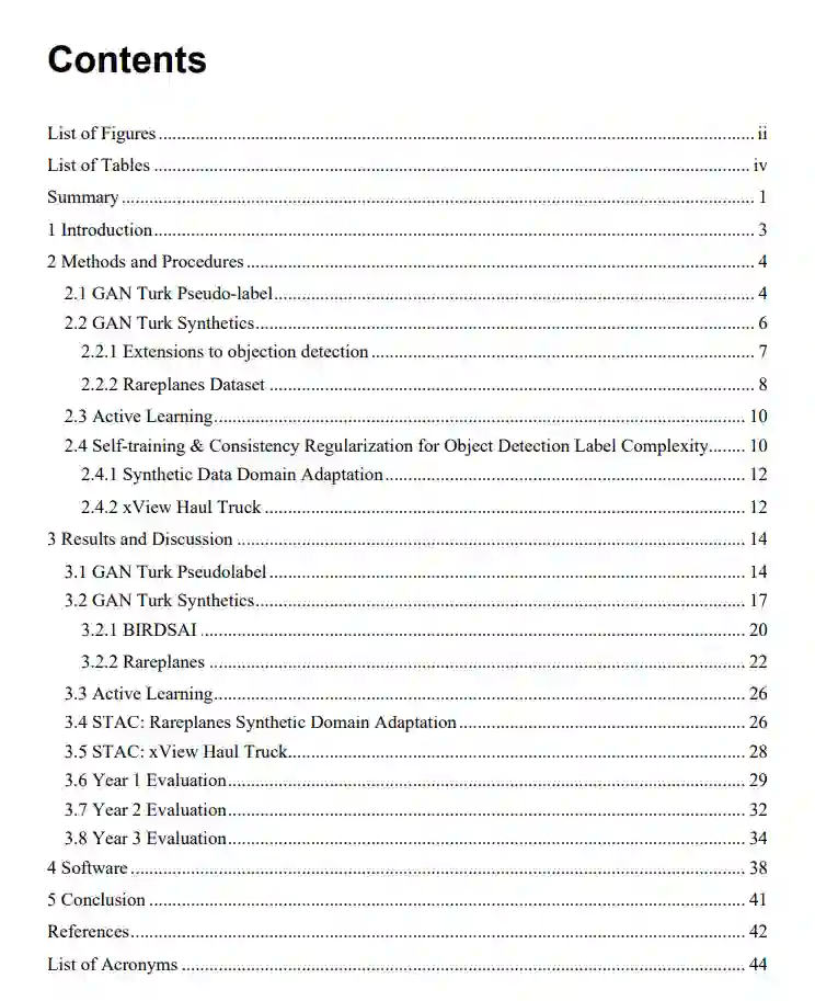 这份最终报告记录了在DARPA的“少标签学习” (LwLL)项目过程中进行的一系列调查。专注于图像分类的领域适应和目标检测的地理空间应用。探索了生成建模技术,包括新颖的GAN Turk方法,以及主动学习,以减少图像分类的标签要求。还研究了使用GAN Turk、一致性正则化和自我训练来进行地理空间数据集的目标检测。发现: