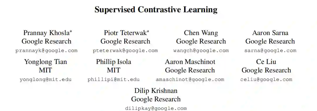 简介: 交叉熵是在图像分类模型的有监督训练中使用最广泛的损失函数。在本文中,我们提出了一种新颖的训练方法,该方法在跨不同体系结构和数据扩充的监督学习任务上始终优于交叉熵。我们修改了批处理的对比损失,最近已证明该方法对于在自我监督的情况下学习强大的表示非常有效。因此,我们能够比交叉熵更有效地利用标签信息。属于同一类别的点的群集在嵌入空间中聚在一起,同时将不同类别的样本群集推开。除此之外,我们还利用了关键成分,例如大批处理量和标准化的嵌入,这些成分已显示出对自我监督学习的好处。在ResNet-50和ResNet-200上,我们的交叉熵均超过1%,在使用AutoAugment数据增强的方法中,新的技术水平达到了78.8%。损失还显示出明显的好处,即可以在标准基准和准确性方面提高对自然基准的自然破坏的鲁棒性。与交叉熵相比,我们监督的对比损失对于诸如优化器或数据增强之类的超参数设置更稳定。