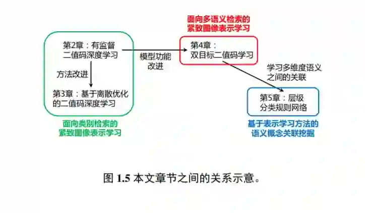 (3)提出了一种可以在多个维度的语义概念上建立物体间关联的二值码学习方法,从而相比于前两个工作,可以更好地建模物体间丰富的语义关联。该方法通过同时使用多个损失函数对模型进行训练,将多种不同抽象程度的语义概念编码到同一组二值码中。因此,该方法可以根据不同用户的特定需求,按照不同的方式使用学习到的二值编码,进行相应的图像检索任务,找到在特定语义标准下相似的数据库图像。另外,考虑到目前公开的数据集中,只有极少数的数据同时具有多种不同抽象程度的语义概念的标注,为了使模型具有更强的泛化性能,该方法被设计为可以使用大量存在的部分标注数据进行训练。