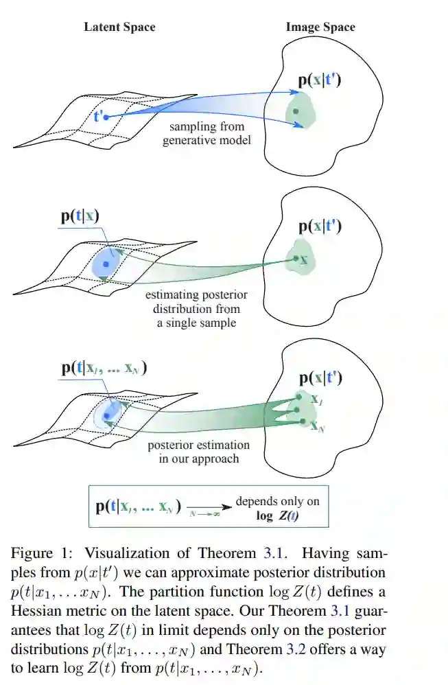 本文提出了一种用于分析生成模型潜空间几何结构的新方法,适用于统计物理模型与扩散模型。该方法通过重构 Fisher 信息度量,来刻画生成模型的潜空间几何。其核心思想是近似生成样本下潜变量的后验分布,并基于此学习对数配分函数,而该函数正是指数族分布中 Fisher 度量的定义基础。 作者为该方法提供了理论收敛性保证,并在 Ising 模型和 TASEP 模型上进行了验证,在重构热力学量方面显著优于现有基线方法。应用于扩散模型时,该方法揭示了潜空间中与相变对应的分形结构,这种结构表现为 Fisher 度量的突变。 研究进一步表明,在单一相态内部,测地线插值近似为线性;但在相变边界处,该线性性被打破,扩散模型在潜空间上的 Lipschitz 常数呈现发散行为。该发现揭示了扩散模型潜空间的复杂结构,并将其与物理中的相变现象建立了联系。
