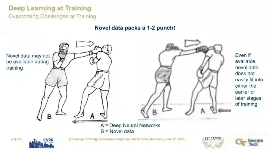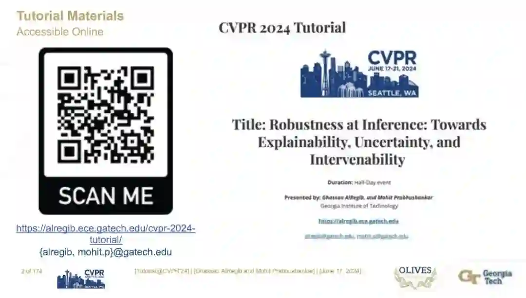 这三点要求鲁棒的神经网络具有可解释性、具备不确定性量化,并且能够被干预。我们提供了一个基于概率的事后分析,以实现可解释性、不确定性和可干预性。事后分析意味着决策已经做出。一个简单的事后上下文相关解释的例子如图1所示。对于一个训练良好的神经网络,常规解释回答了“为什么是琵鹭?”的问题,通过突出鸟的身体。然而,一个更相关的问题可能是“为什么是琵鹭,而不是火烈鸟?”这样的提问需要提问者了解火烈鸟的特征。如果网络显示区别在于没有S形的颈部,那么提问者会对所提供的上下文回答感到满意。上下文解释不仅建立信任,还评估神经网络并解释其决策。在更大的背景下,可解释性的目标必须是满足各种水平的专家的需求,包括研究人员、工程师、政策制定者和普通用户。在本教程中,我们详细介绍了一种基于梯度的方法,能够提供上述所有解释而无需重新训练。一旦神经网络被训练,它就像一个知识库,不同类型的梯度可以用来遍历对抗性、对比性、解释性、反事实表示空间。除了解释外,我们还展示了这些梯度在定义不确定性和可干预性方面的实用性。我们将讨论多种图像理解和鲁棒性应用,包括异常检测、新奇检测、对抗性样本检测、分布外图像检测、图像质量评估和噪声识别实验等。在本教程中,我们将审视鲁棒性作为一种以人为中心的衡量大规模神经网络实用性的方法的类型、视觉含义和解释。