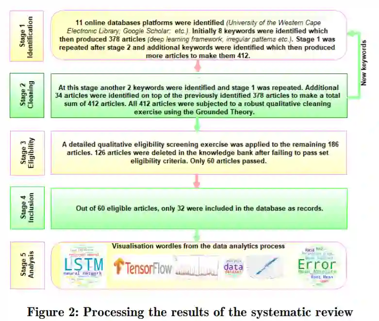 本文回顾了过去使用深度学习框架分析离散不规则模式的复杂顺序数据集的方法。这种数据集的典型示例是金融数据,其中特定事件触发了数据序列中的突然不规则变化。传统的深度学习方法在分析这些数据集时表现不佳甚至失败。系统的文献综述的结果揭示了基于递归神经网络的框架的主导地位。 发现主要使用平均绝对误差和均方根误差准确性度量来评估深度学习框架的性能。所确定的潜在挑战是:缺乏性能稳健性,方法的不透明性,内部和外部体系结构设计和配置问题。这些挑战为改进复杂的不规则图案的顺序数据集的框架提供了机会。