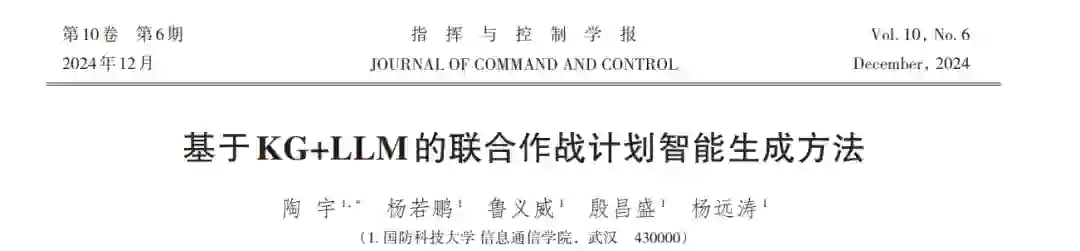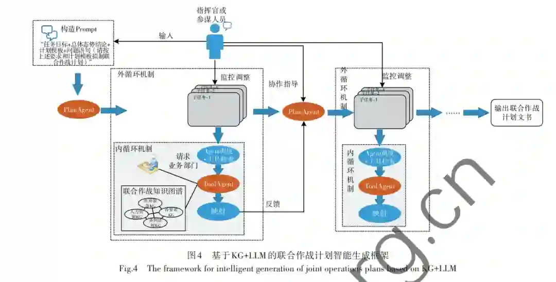 当前国内外对于联合作战计划生成通常遵循基于预案的 “快速修案” 和基于操作流程与作战规则的 “慢速制案” 模式,但由于在制案过程中作战信息未成体系化管理、信息交互方式繁琐、人为理解存在偏差等,导致制案周期较长,难以满足实际作战需要,因此,提出了基于KG+LLM的联合作战计划智能生成框架,通过知识图谱和大模型技术缩短了制案周期,结合 “安东诺夫机场闪击战” 设计了基于KG+LLM的人机协作 “智能拟案” 模式,在CMO海空兵棋系统验证了框架的可行性和有效性。