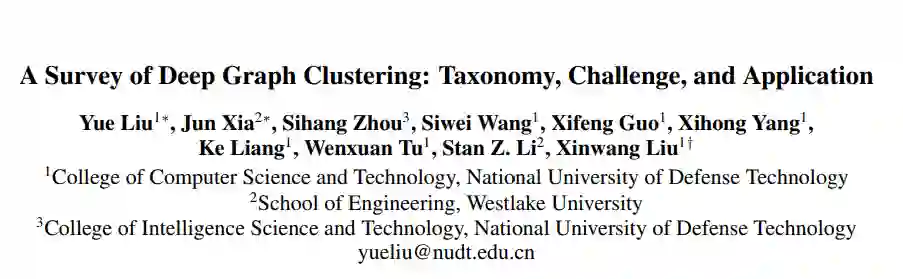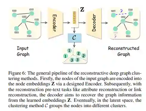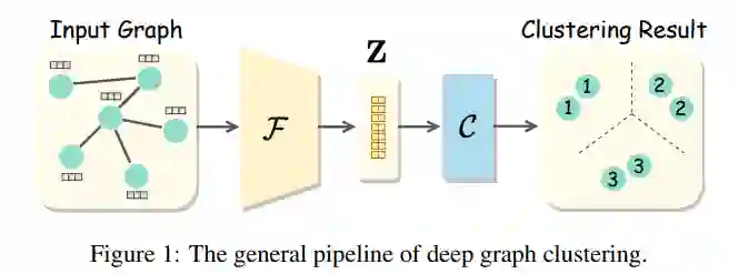 图聚类是一项基本且具有挑战性的任务,它以无监督的方式将节点分离到不同的组中。近年来,得益于深度图神经网络(GNNs)强大的图表示能力[Kipf and Welling, 2017; Velickovi ˇ c´ et al., 2017; Kipf and Welling, 2016],深度图聚类已经取得了卓有成效的进展。然而,与深度聚类区域不同[Zhou et al., 2022; Ren et al., 2022; Aljalbout et al., 2018; Min et al., 2018],深度图聚类的研究论文很少。为了辅助研究人员回顾、总结和规划未来,对深度图聚类进行了全面综述。在本文中,我们首先介绍这个快速发展领域的一般管道和重要基线。然后,将详细描述分类法、挑战和应用。